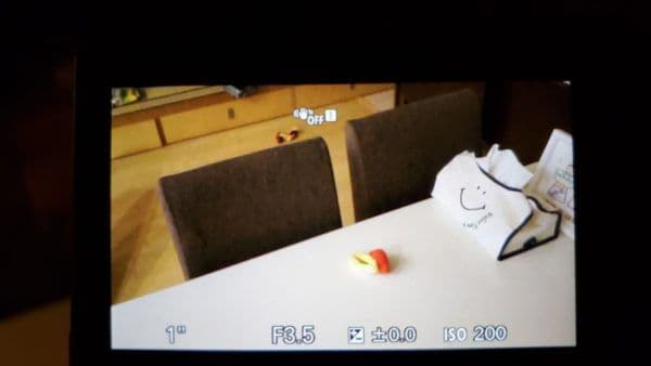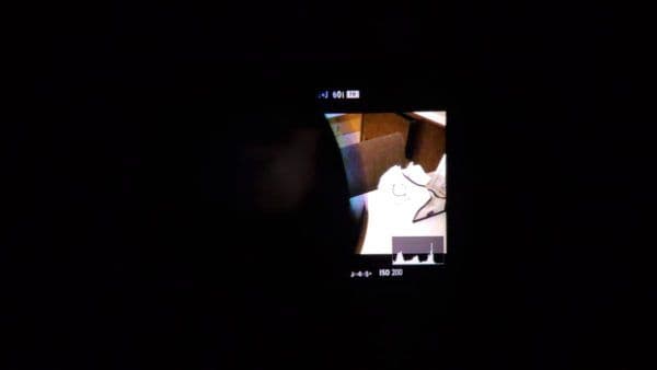 覗き込んだEVFの画面。3分の2が真っ黒に。