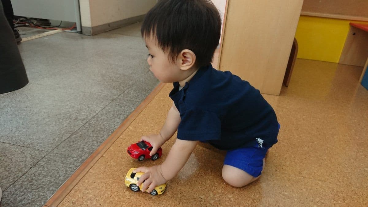 ところで、今回初めて息子を連れて行ったのですが、キッズスペースでは早速ミニカーを手に取りました。