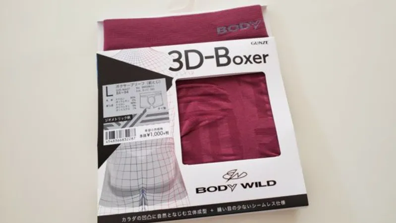 着用時の圧力が体の凹凸に均一になるように考えられた3D設計の成型ボクサー。従来品より腰回りや裾&股下の圧力を軽減しているそうです。