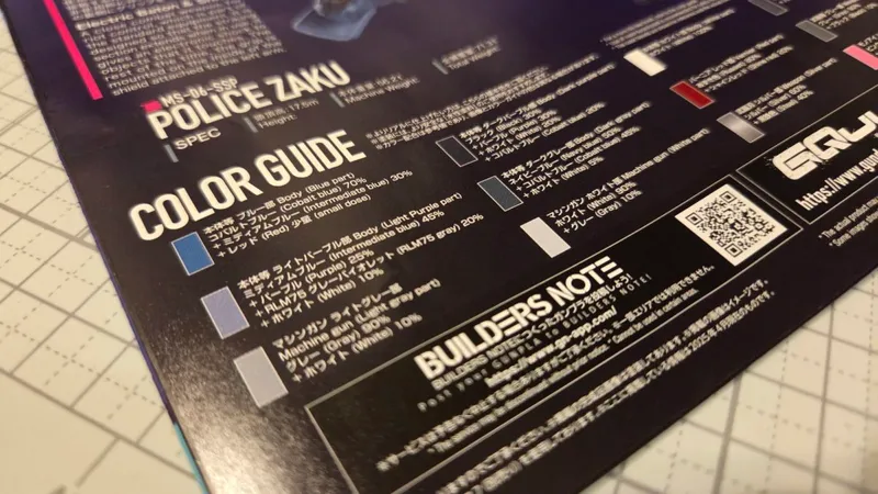 ブルーブラックとグレーの組み合わせは色のバランスとしては良さそうですが、フレーム部を薄いグレーにしたので、白いデカールの映え具合が気になります。