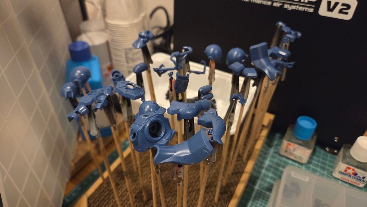 ゲート跡処理跡や発色の理由からちゃんとサフも吹いてるので、塗装の手間はかなりかかってますが、その分重ね塗りをしなくとも発色してくれるので、塗膜を厚くせずに済んでいます。