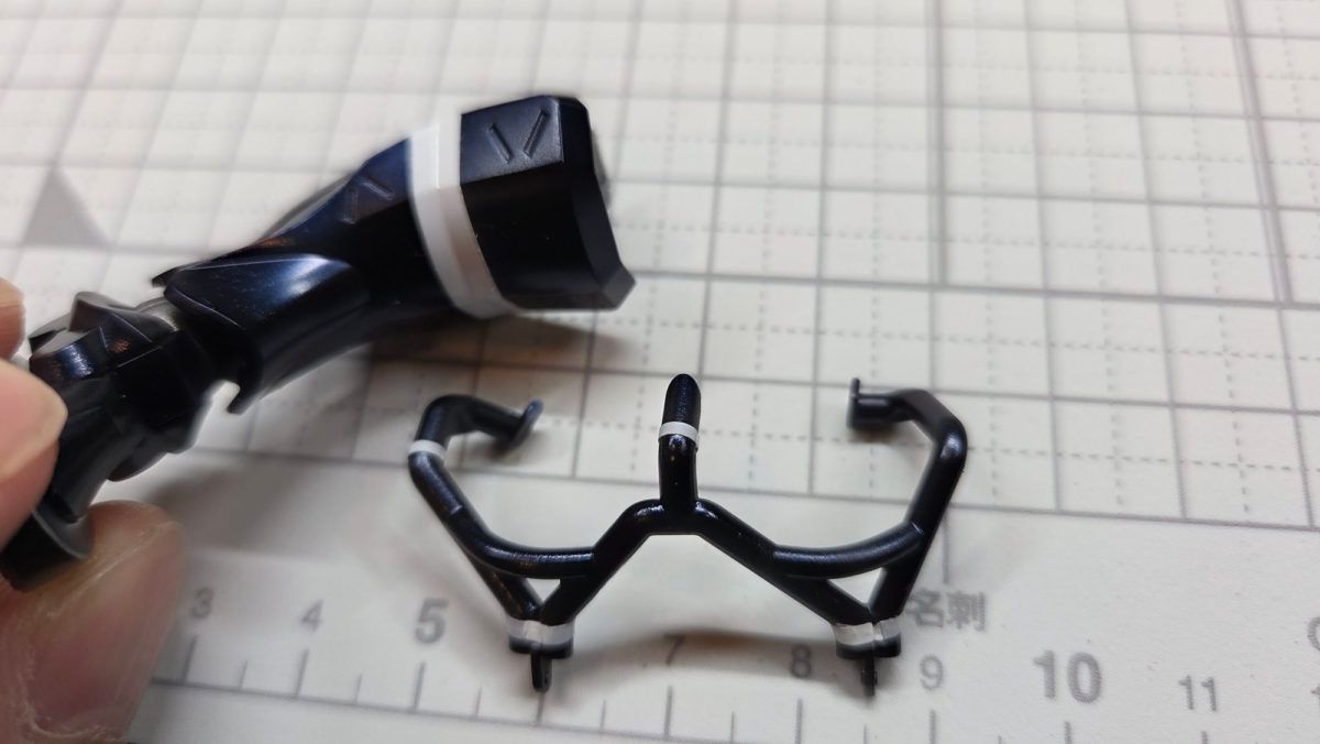 白い帯状の塗り分けも上からファンデーションホワイトで。ただ細いパイプ状のフレーム部分はマスキングが大変そうなので、同梱のシールを使用しました。