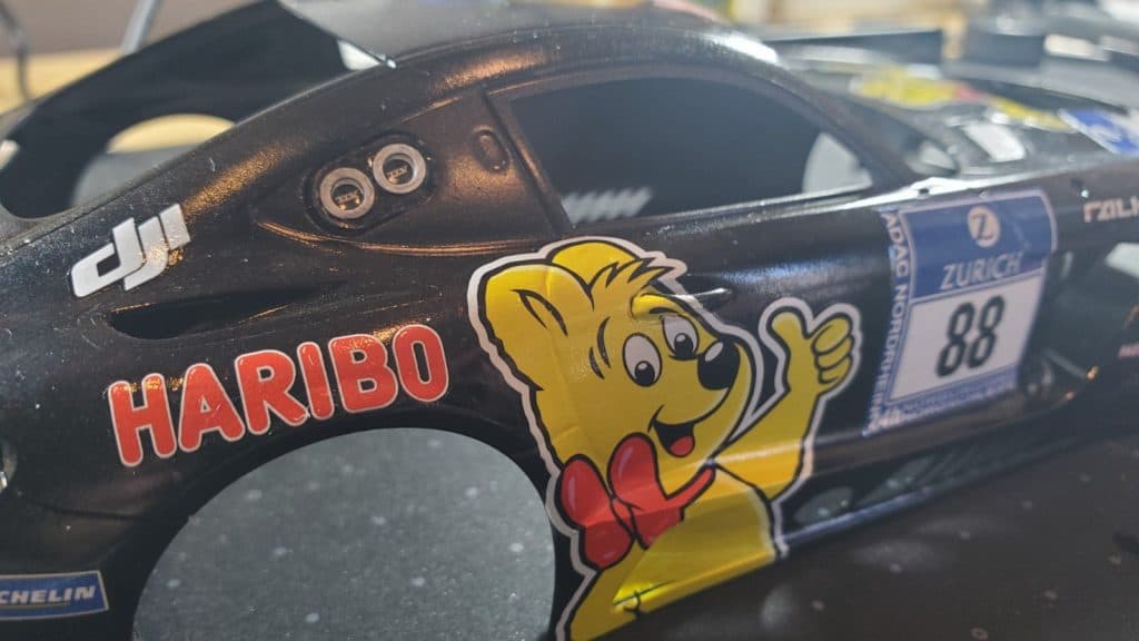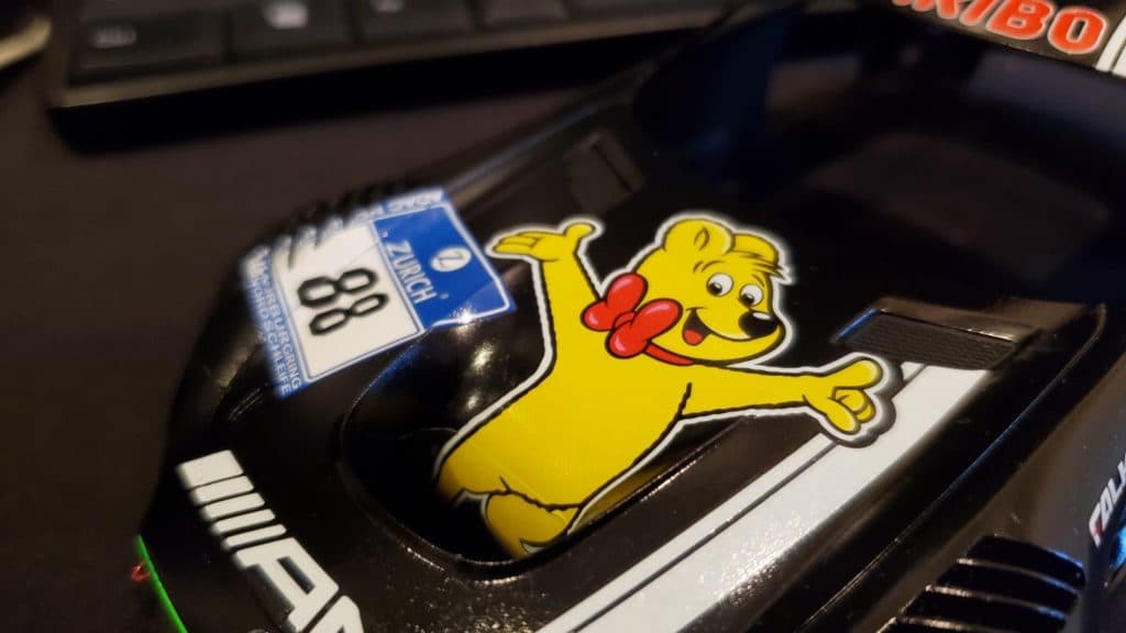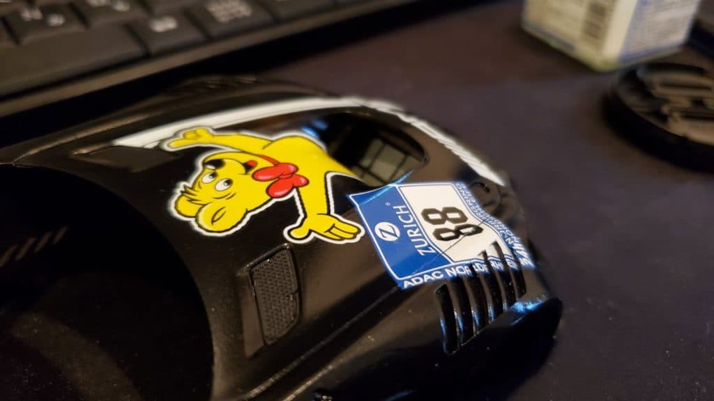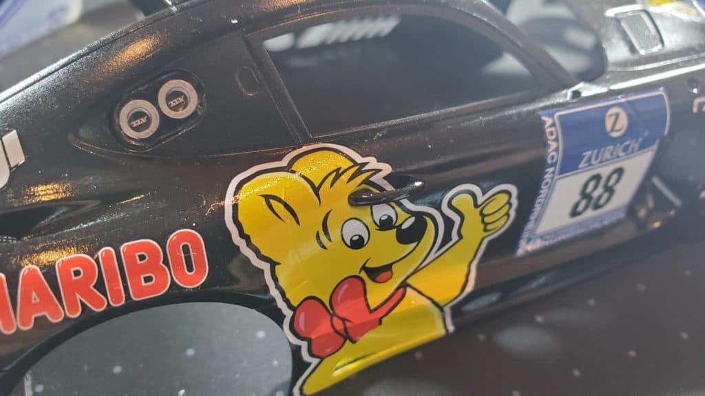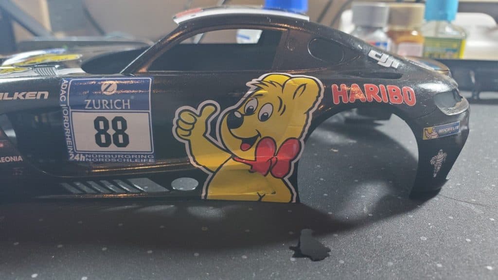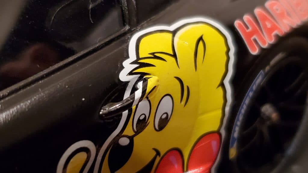 いよいよ今回のカスタムの肝となるデカール貼りになります。HARIBOのクマが4方向に鎮座しているシンプルデザインなのでそんなに大変じゃないと思ってたのですが、そこそこ面倒でした。