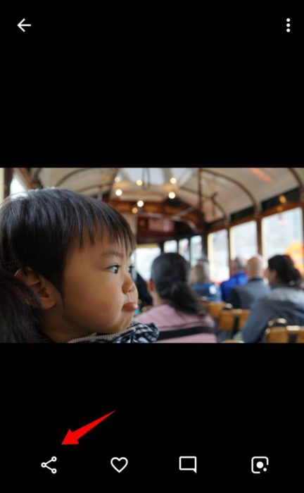 アップしたい写真を選択してシェアボタンを押す(複数枚の選択も可能)