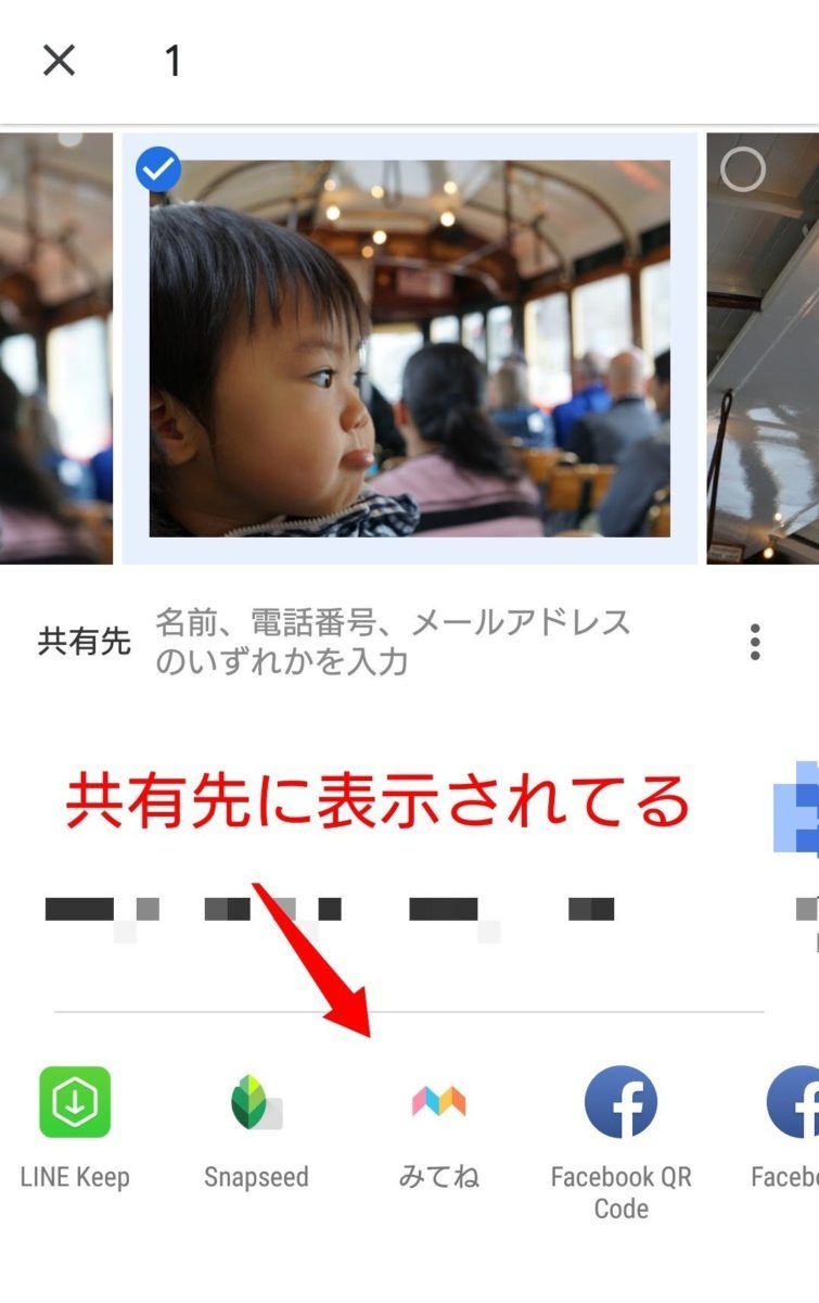 共有先候補のアプリが出てくるので、「みてね」を選択