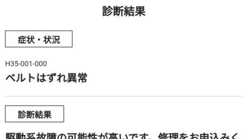表示されている「H35」の故障内容を調べてみると、どうやら洗濯槽とモーターをつなぐベルトが外れているようです。