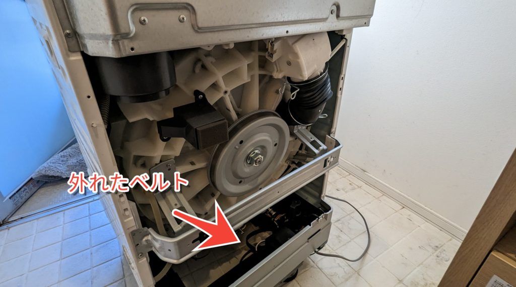 当然、ベルトが外れているだけでなくて、もうちょっと厄介な感じであれば修理を呼びますが、とりあえず新品ベルト購入して開けてみます。