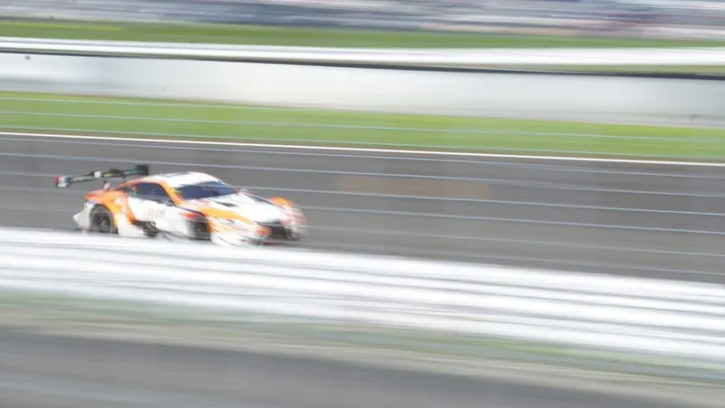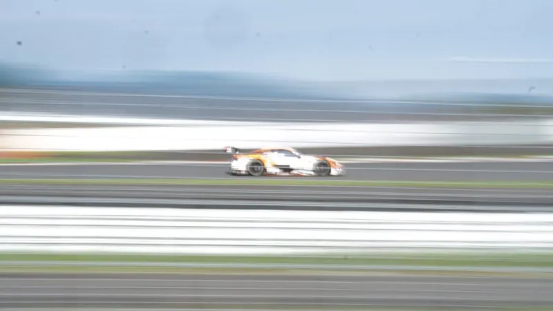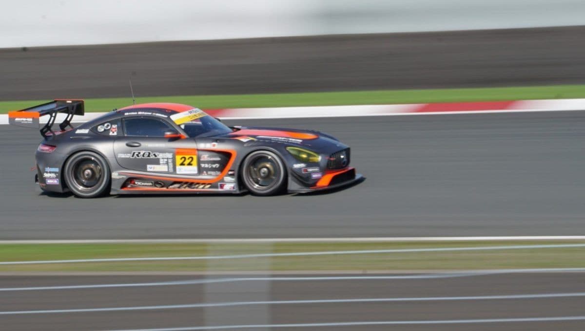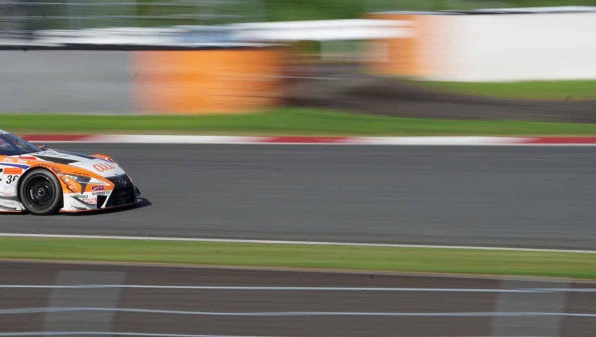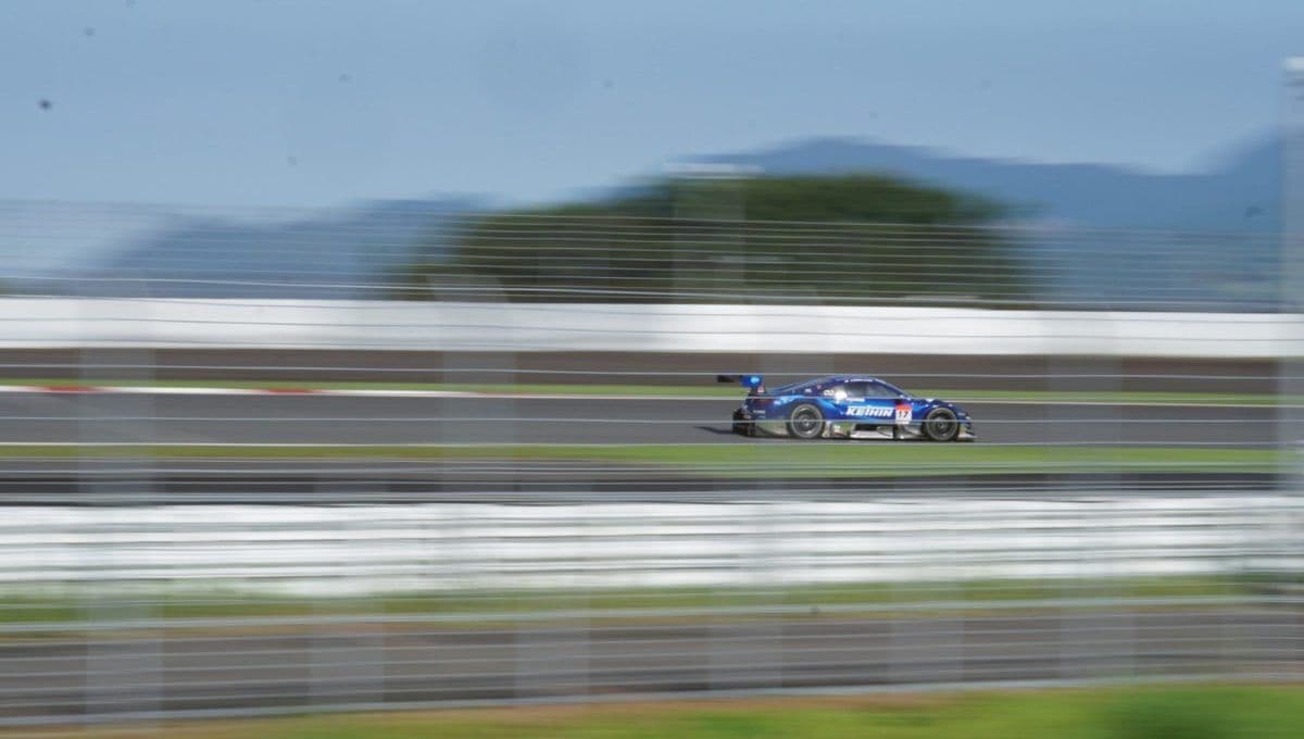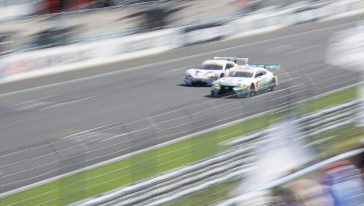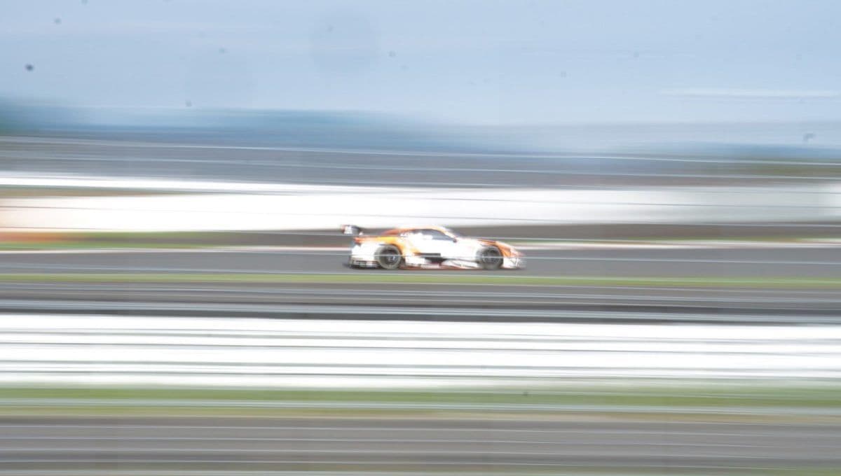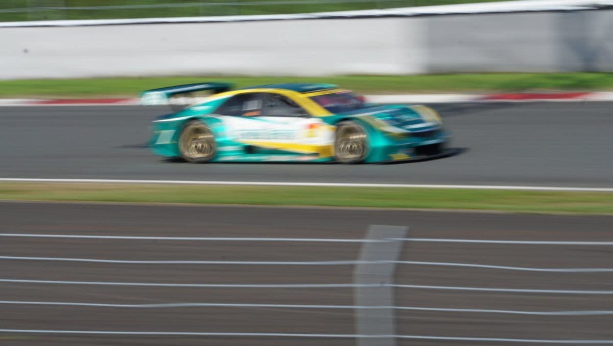 走行中のGTマシンのかっこいい写真はやはり流し撮りです。マシンの背景が流れているように写り、スピード感がでます。これを撮るためにはシャッタースピードを落とし、マシンの動きにカメラの動きを合わせて撮らねばなりません。