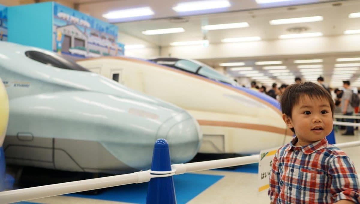 入場するとかなりテンションの上がる息子。新幹線の前ではしゃぎます。新幹線も在来線も良くわかってないくせに。
