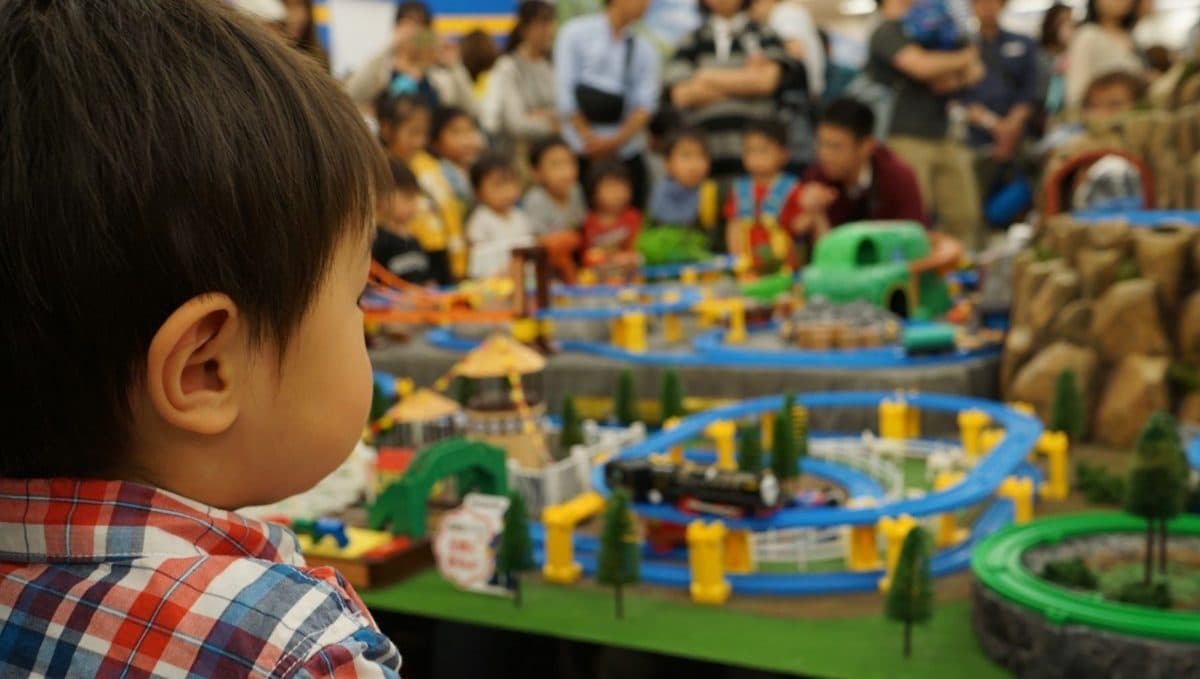 今回の目玉は巨大トンネル。プラレールのジオラマの中に入れるという企画でしたが、こちらは長蛇の列、まぁここには入らなくとも十分堪能できます。どうせトンネルの価値はわからんだろうし。