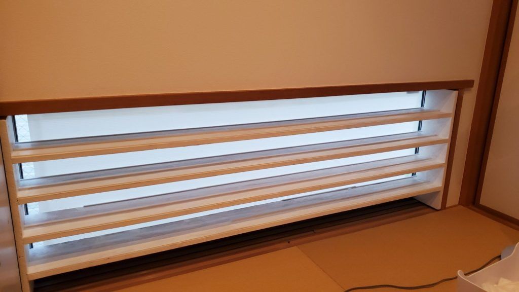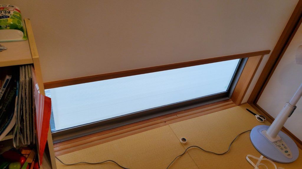 今回設置する場所は、写真の右に見えている地窓の部分。この障子を取っ払うと窓まで14㎝ほど奥行きのある空間ができます。ここに棚を設置します。