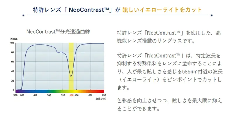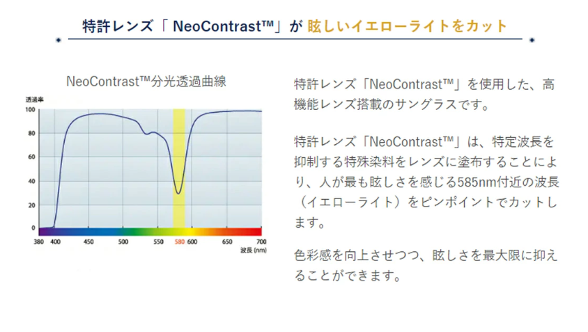 NeoContrastという特殊レンズを製造しているイトーレンズが販売しているサングラスになります。もちろんこのレンズを使って好きなフレームと組み合わせるということもできますが、フレームデザインも好きなタイプなのでこちらを選択しました。