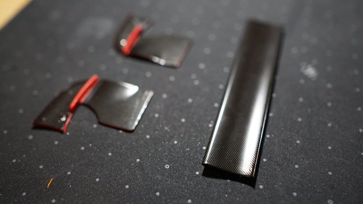 塗装とはちょっと違うかもしれませんが、カーボン素材のところはカーボン風のシートを貼ってみました。